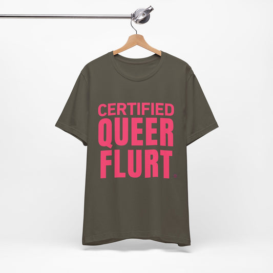 Certified Queer Flurt Tee with Pink Text | Athletic Pride Gear