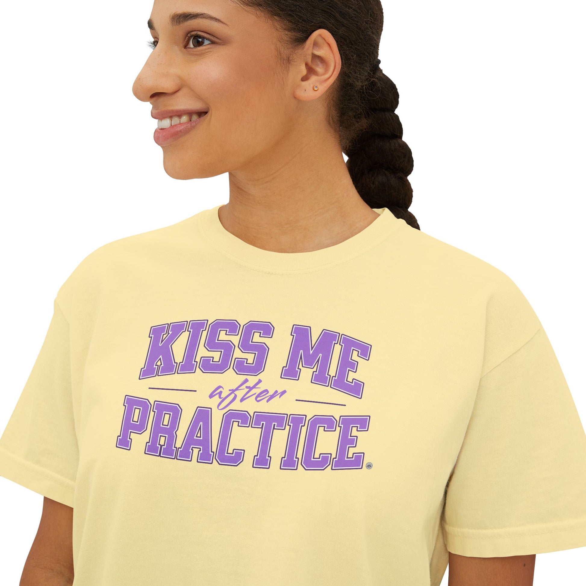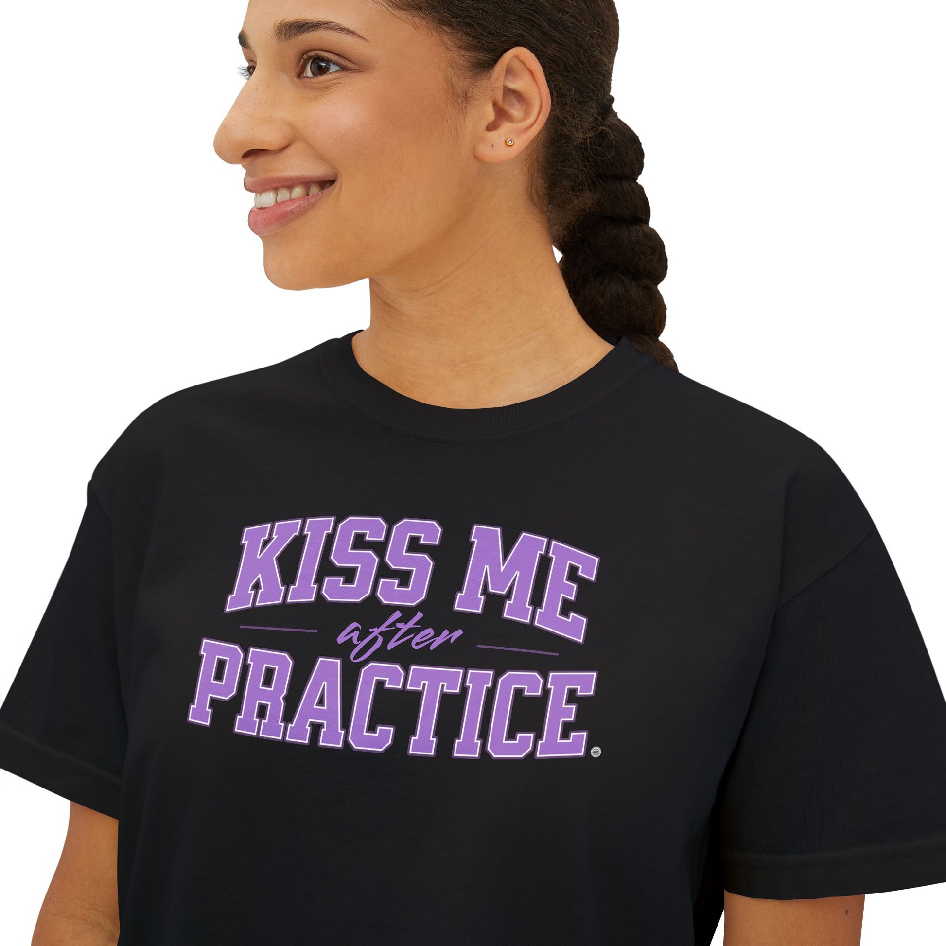 Boxy Tee - Kiss Me After Practice - Lilac Text - Casual Wear, Sleep Tee, Gift for Friends, Birthday, Sporty Style