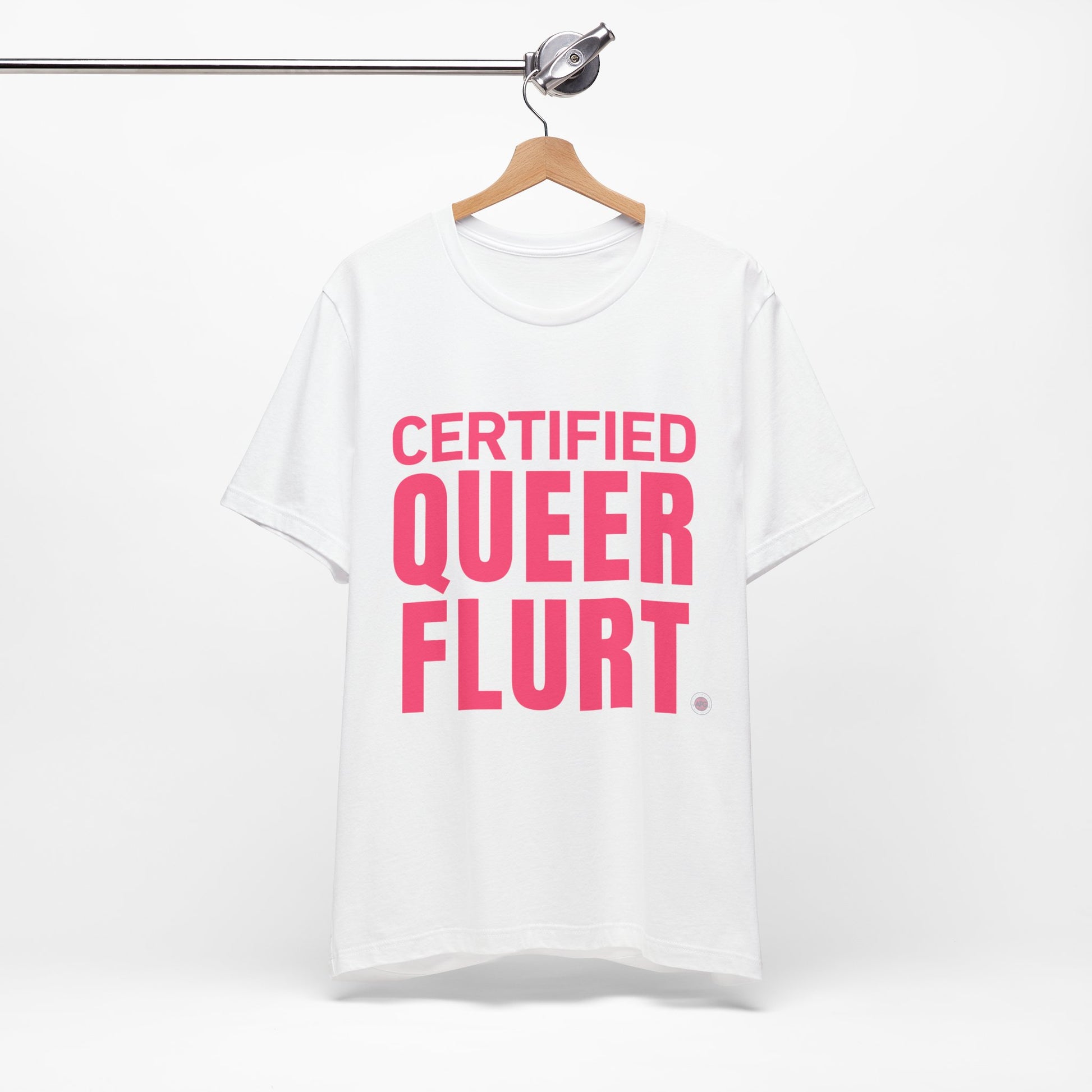 Certified Queer Flurt Tee with Pink Text | Athletic Pride Gear