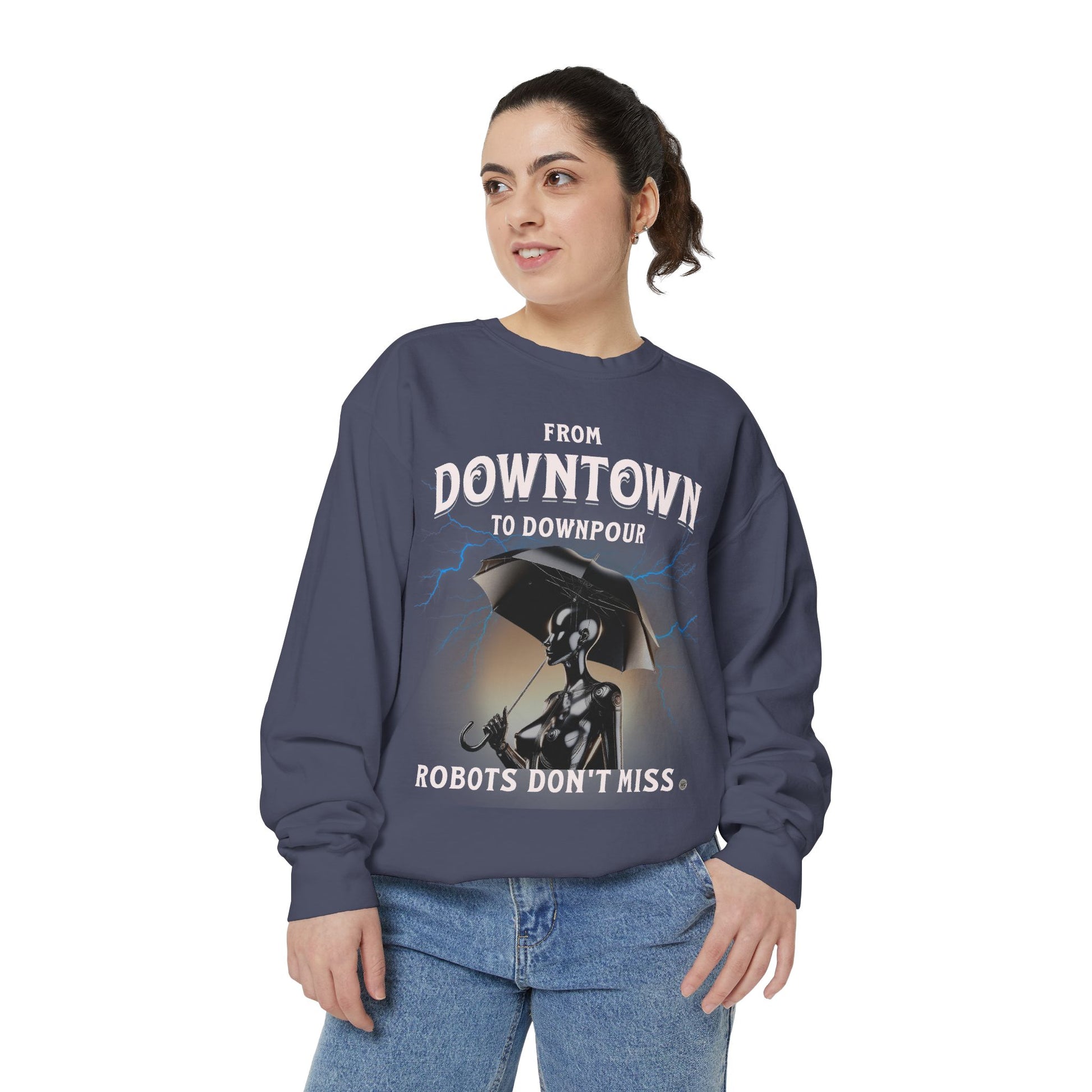 Garment-Dyed Sweatshirt - From Downtown to Downpour Robots Don't Miss