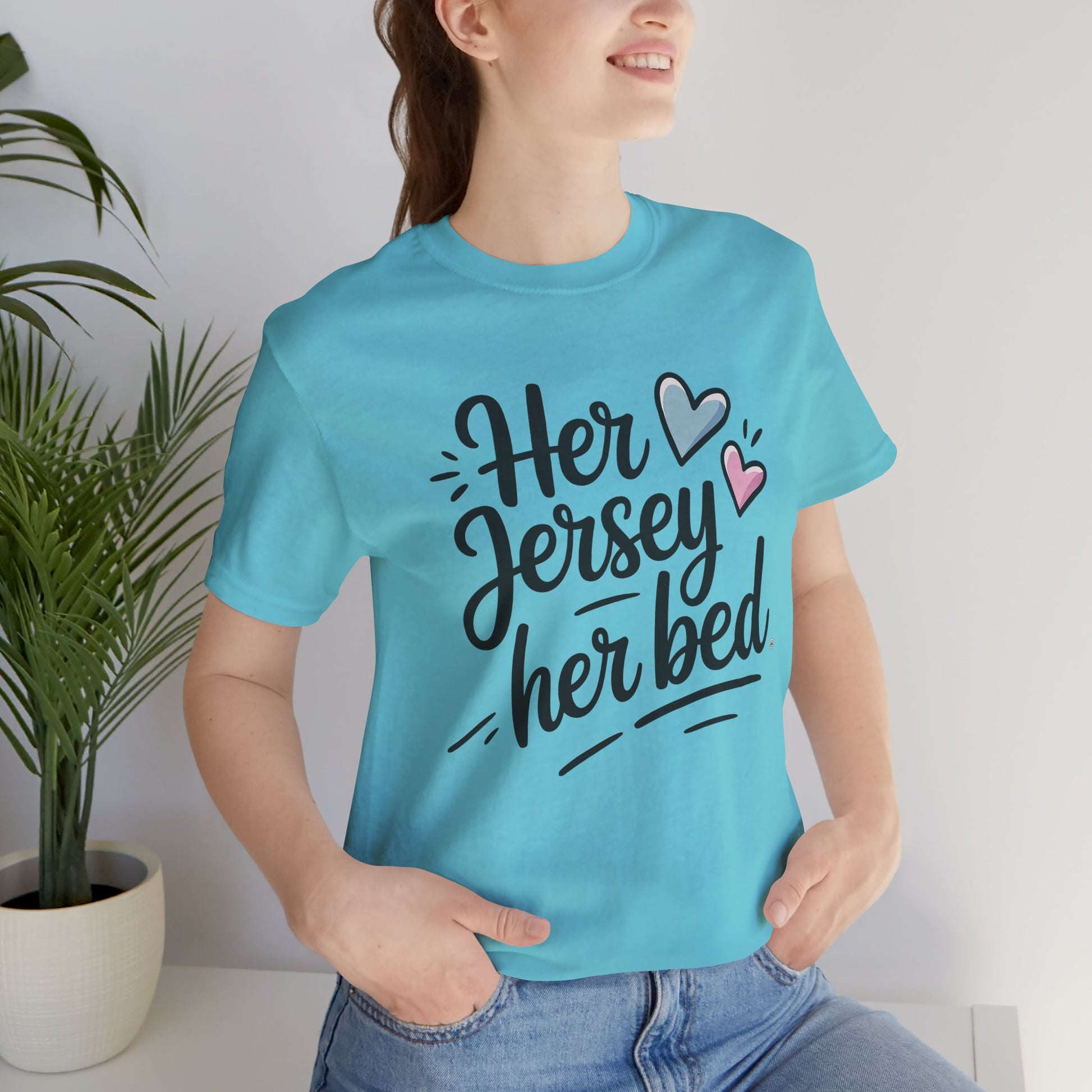 Her Jersey, Her Bed – Matching Sapphic Couple Tee