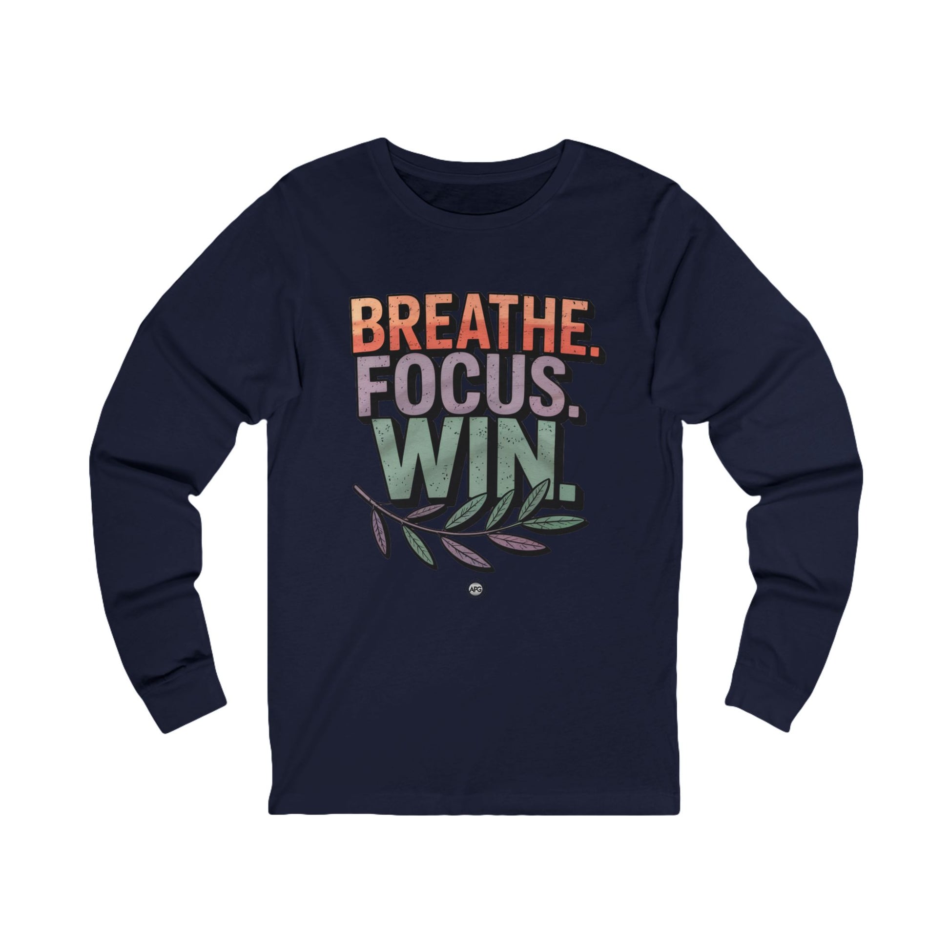 Long Sleeve Tee - Breathe Focus Win Inspirational Quote