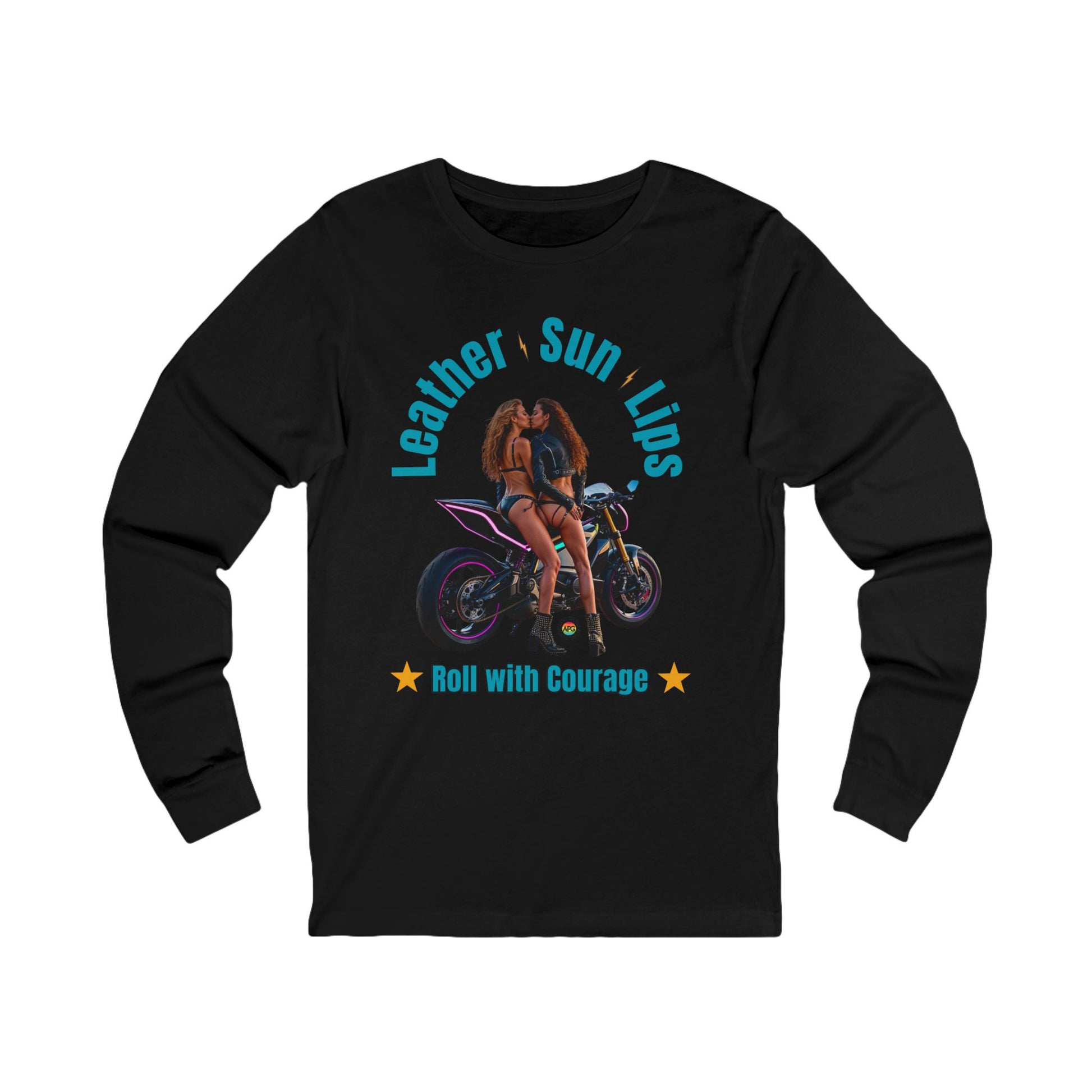 Long Sleeve Tee - Courageous Sexy Females on Motorcycle