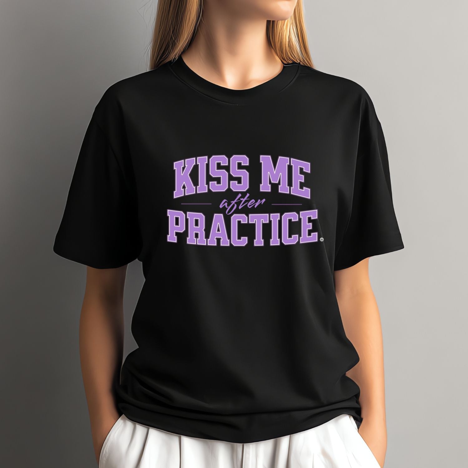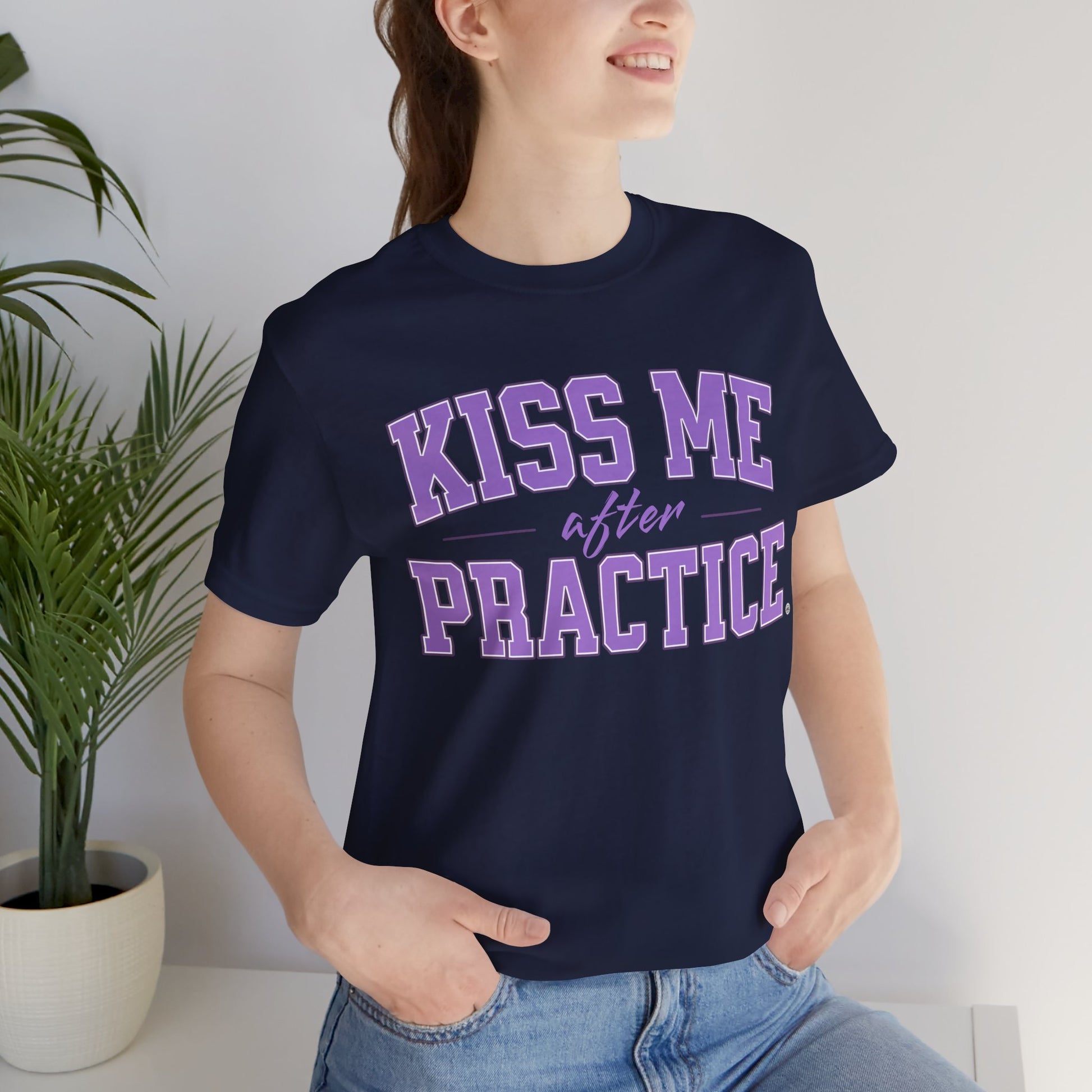 Boxy Tee - Kiss Me After Practice - Lilac Text - Casual Wear, Sleep Tee, Gift for Friends, Birthday, Sporty Style