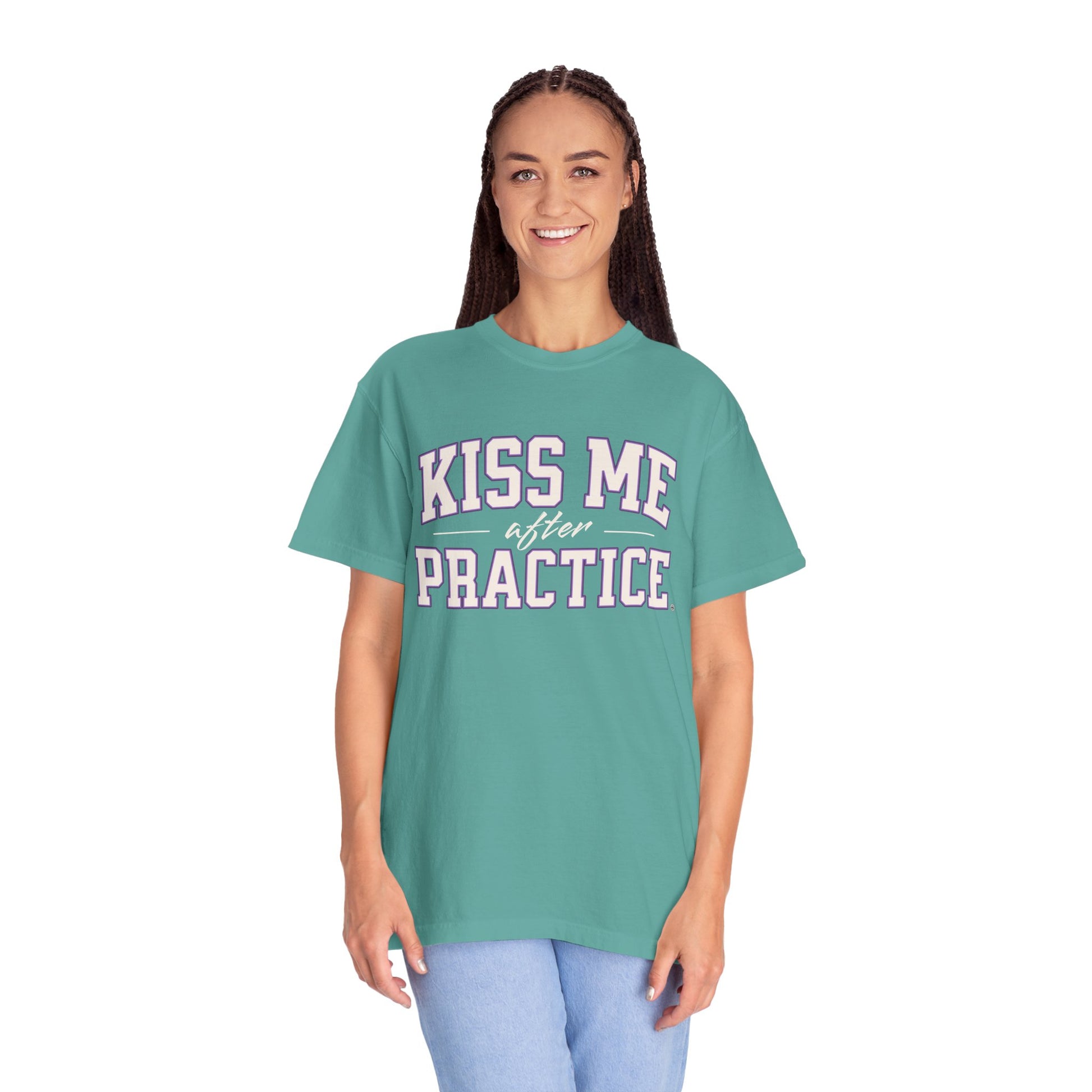 Boxy Tee - Kiss Me After Practice - Lilac Text - Casual Wear, Sleep Tee, Gift for Friends, Birthday, Sporty Style